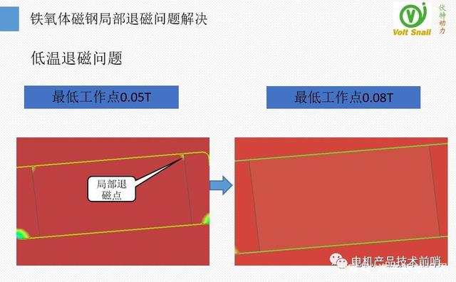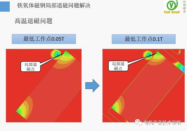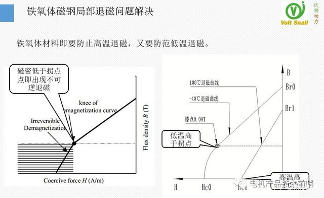 最后一個關鍵問題是磁鋼退磁問題,我們的方案用到了鐵氧體磁材,這是一種即低廉又特殊的磁性材料。